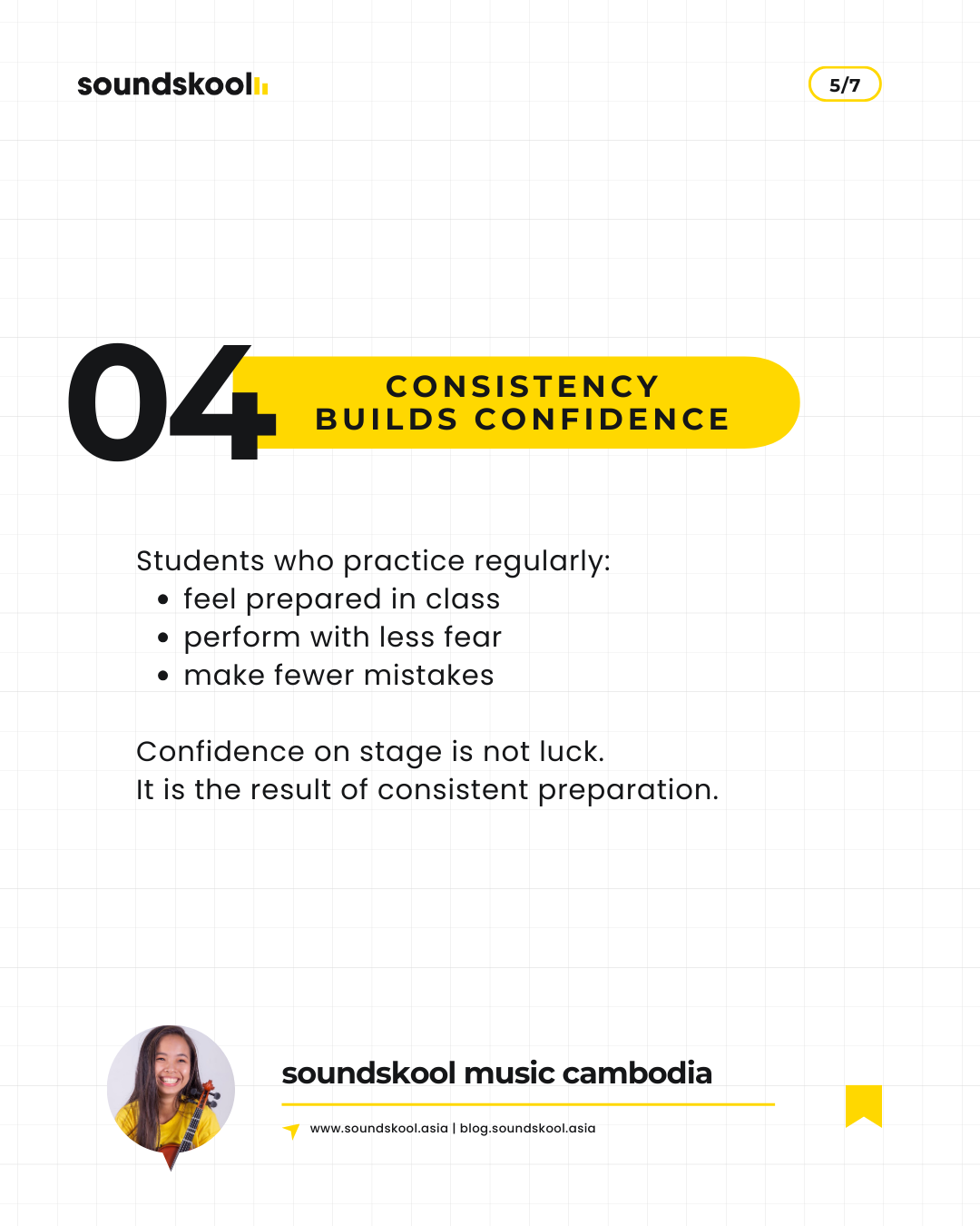 In music learning, consistency matters more than talent. Short, regular practice builds technique, confidence, and musical understanding over time.
